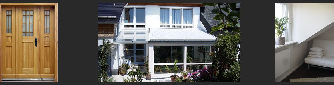 Bauschreinerei: Wintergarten, Pergola, Fenster (Handelsware), Trockenbau, Haus- u. Zimmertüren, Treppen, Dachfenster..